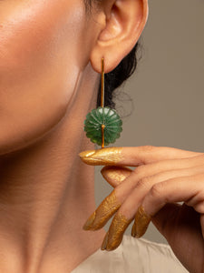 The Green Floret earrings featuring a green aventurine stone shaped like a flower in full bloom, symbolizes rejuvenation and the birth of new beginnings. The lush green colour represents renewal, signifying growth and the emergence of life after the old fades away. This design captures the essence of nature's cycle, where every end leads to a fresh, vibrant start.